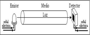 Medio de transmisión: fibra de vidrio o plástica muy delgado.