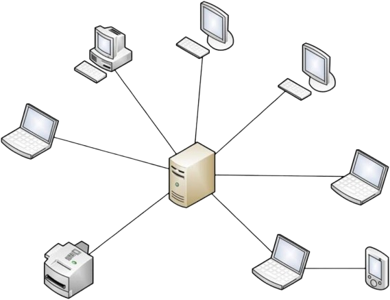 Estrella: equipos conectados a un nodo central. Si el nodo falla, queda