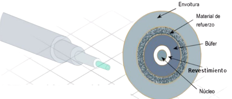 Núcleo: elemento que transmite la luz en el centro del cable, y está hecho
